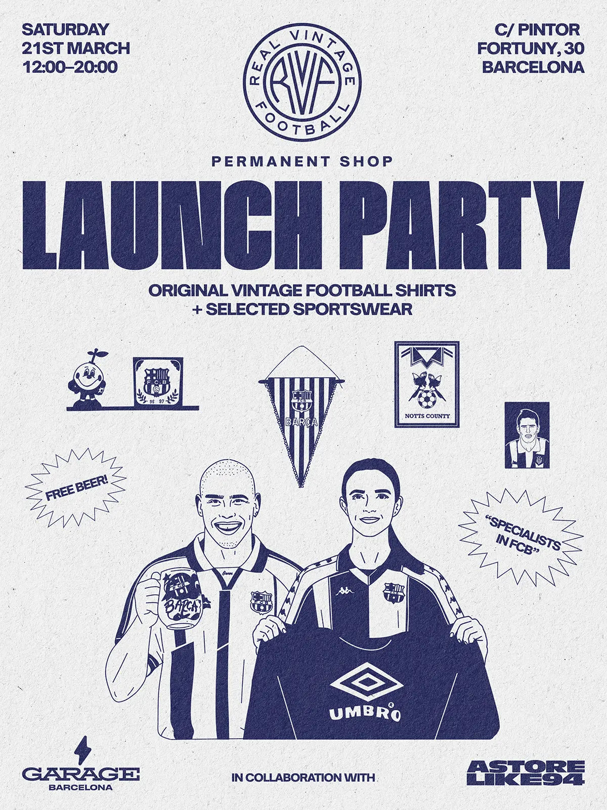 Desde el 21 de marzo nos encontrarás en C/ del Pintor Fortuny, 30: nuestra nueva tienda permanente a pocos pasos de La Rambla. Habrá camisetas originales de los 90 y 2000 – con foco especial en el Barça – sportswear vintage seleccionado y memorabilia memorable de A Store Like 94.