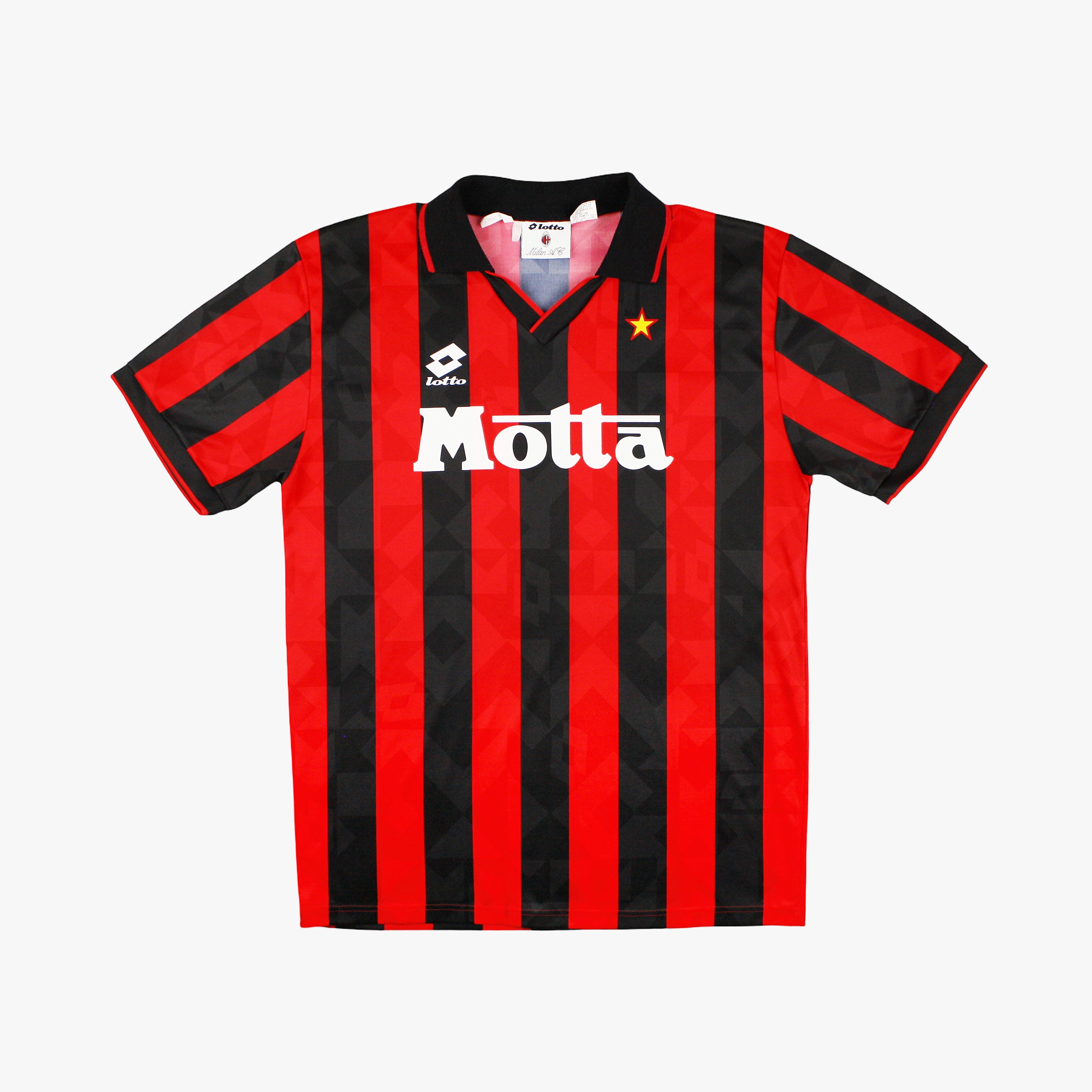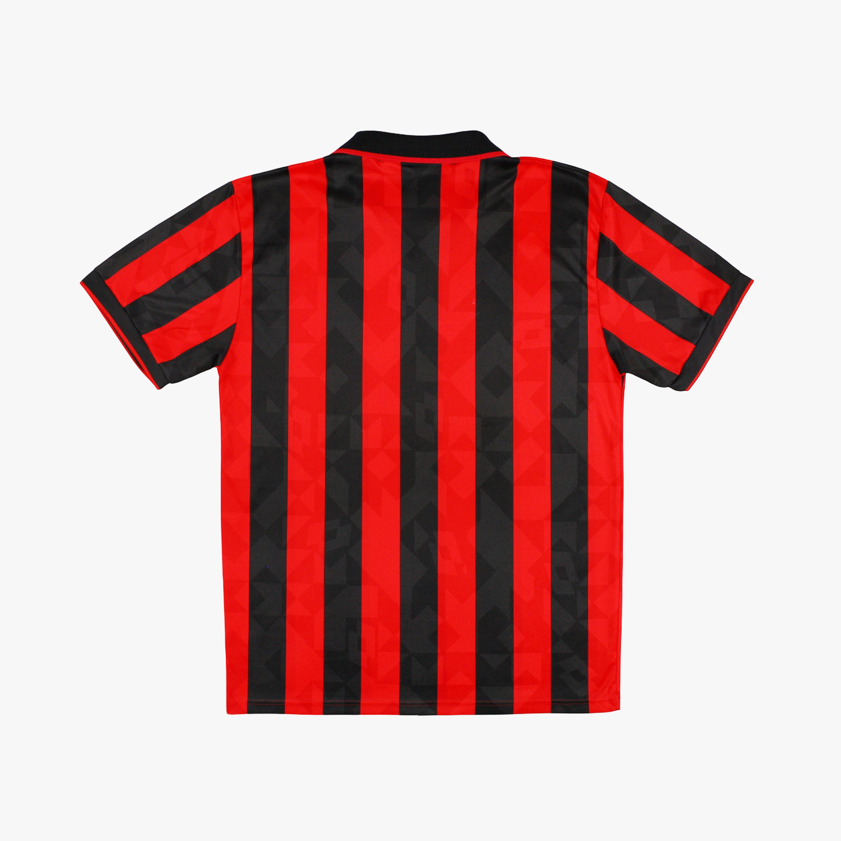 Sensational and incredibly rare AC Milan home shirt from the 1993/1994 season. You only have to glance at the players the club had at their disposal – Van Basten, Papin, Maldini, Baresi, Donadoni, Desailly – to understand why they dominated Italian football in that era, the array of talent is simply mind-blowing. The club inevitably won Serie A that year, and followed it up with a sensational Champions League win as well, destroying Barcelona 4-0 in the final. So what we have here is a very rare shirt, in almost perfect condition, from an incredibly successful season in the club's history. Belissima.