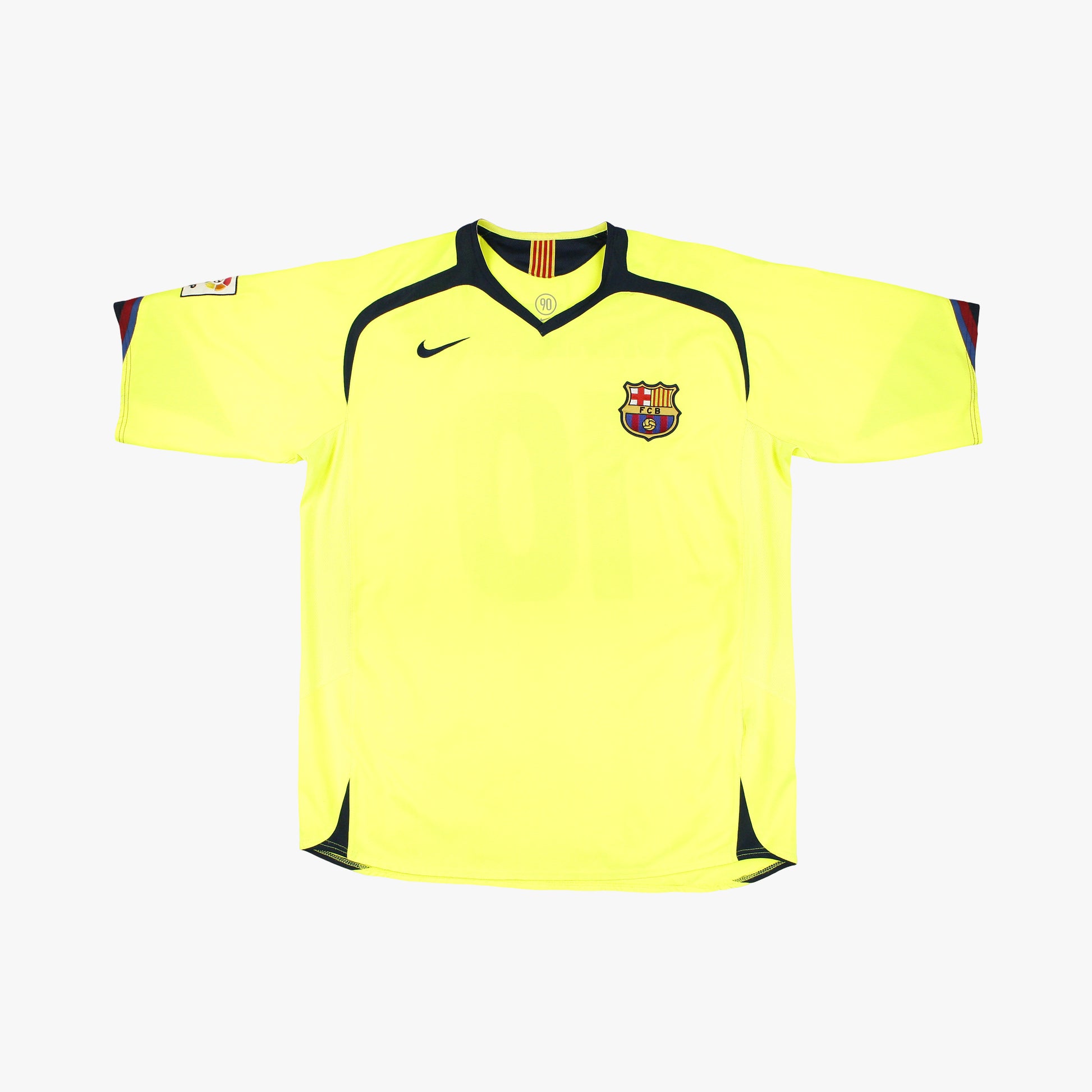 The incredible Barcelona neon away shirt worn in the 05/06 season in the height of the Ronaldinho era. And it was a particularly successful year for the club who went on to won both La Liga and the Champions League under boss Frank Rijkaard.