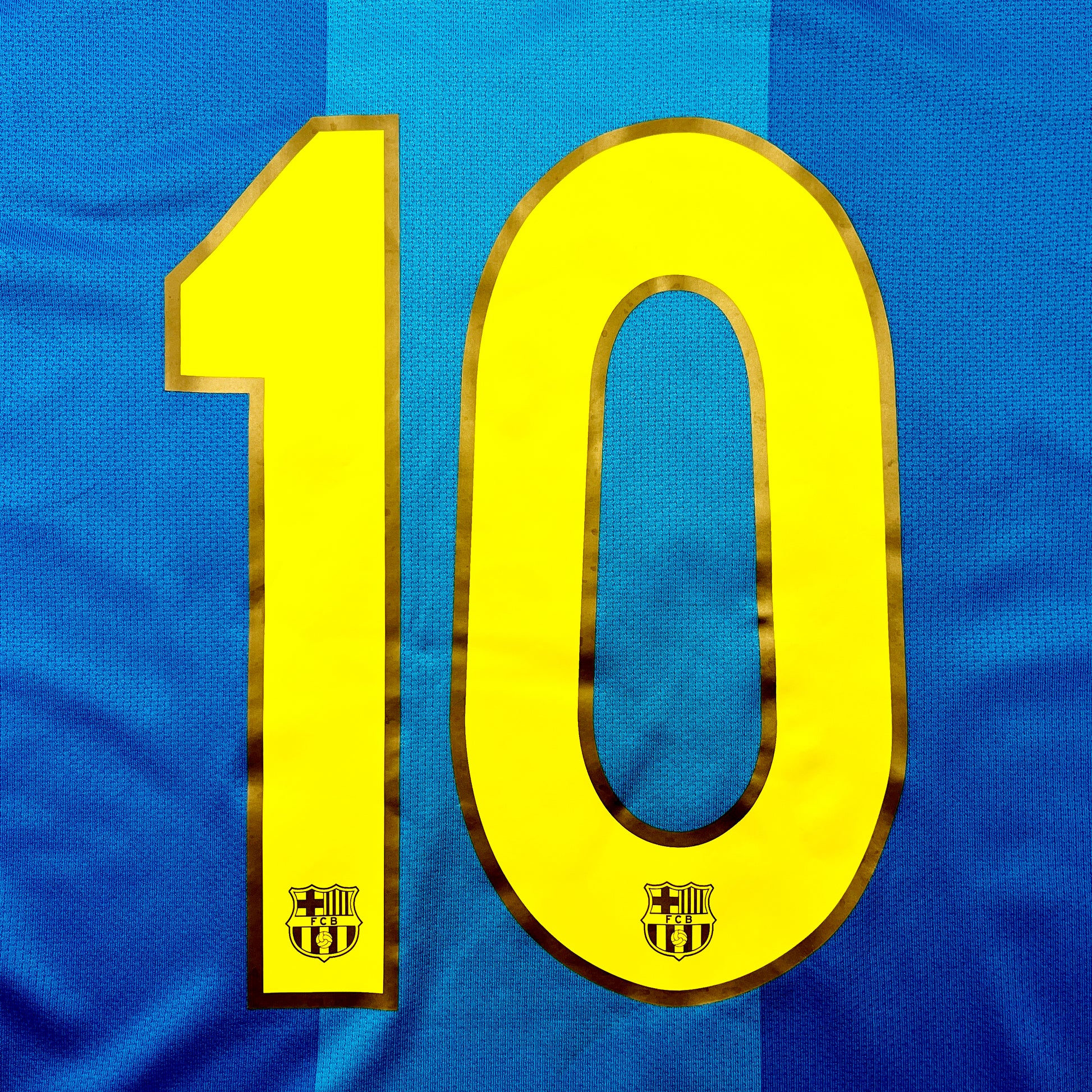 This Barcelona away shirt design, worn during the 07/08 season (and again as a third kit in 08/09), was produced with extra detail surrounding the club crest to commemorate the 100th anniversary of their iconic stadium Camp Nou. The 07/08 campaign was manager Frank Rijkaard's last in charge and ultimately ended in disappointment, with Los Blaugrana failing to collect any silverware. It was also Brazilian legend Ronaldinho's last at the club, as the arrival of Thierry Henry and the emergence of a young Lionel Messi resulted in his departure at the end of the season.