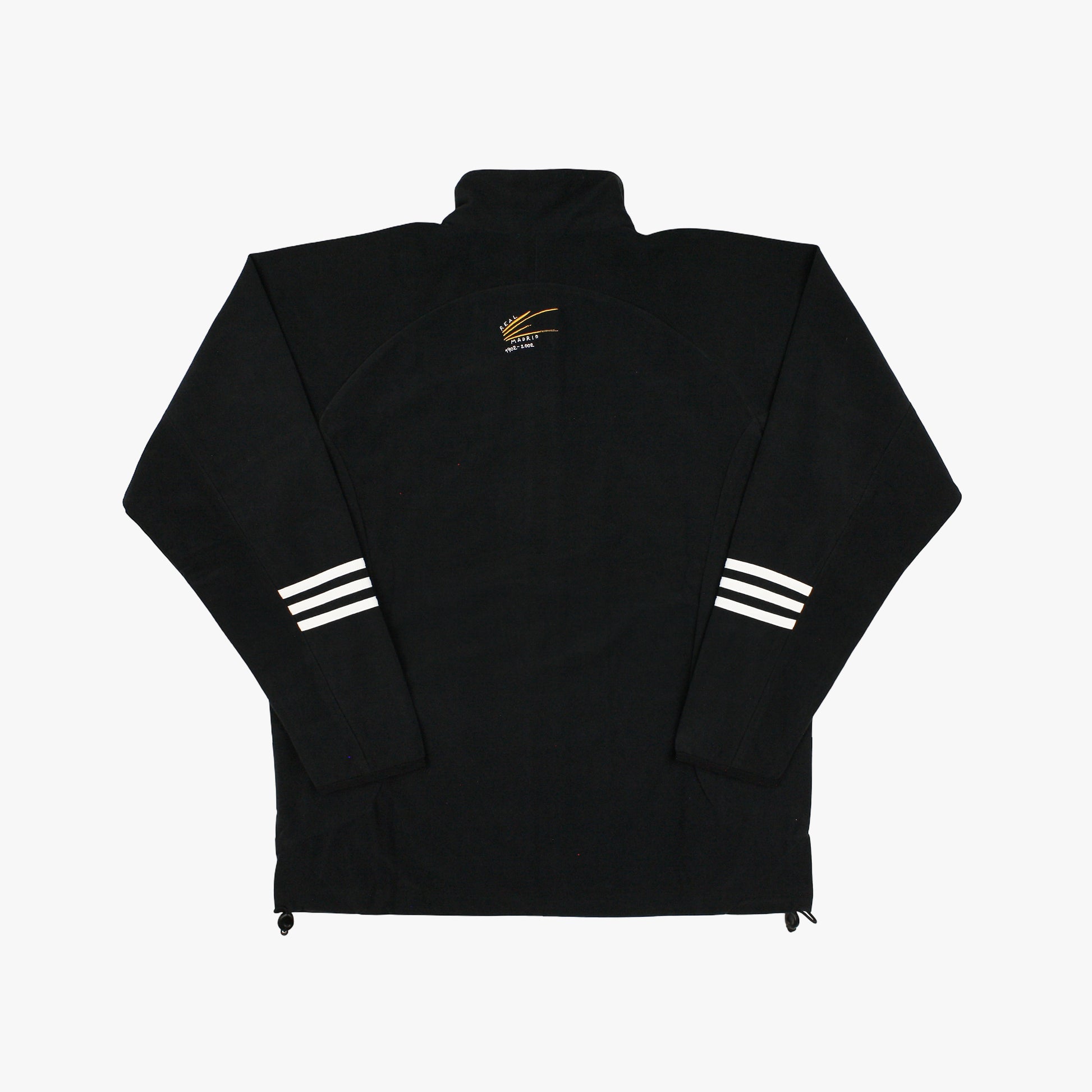 This Adidas full tracksuit was released for Real Madrid’s Centenary celebrations (1902–2002) and used during the 02/03 season, when the club won La Liga under Vicente del Bosque. Unlike the playing kits, the design is completely black with white Adidas stripes, featuring embroidered club crests on both jacket and trousers, and the special centenary emblem on the back. With no sponsor on the front, it offers a clean, classic look tied to the golden Galácticos era. A rare and highly collectible piece — even more so in this state, brand new with tags.