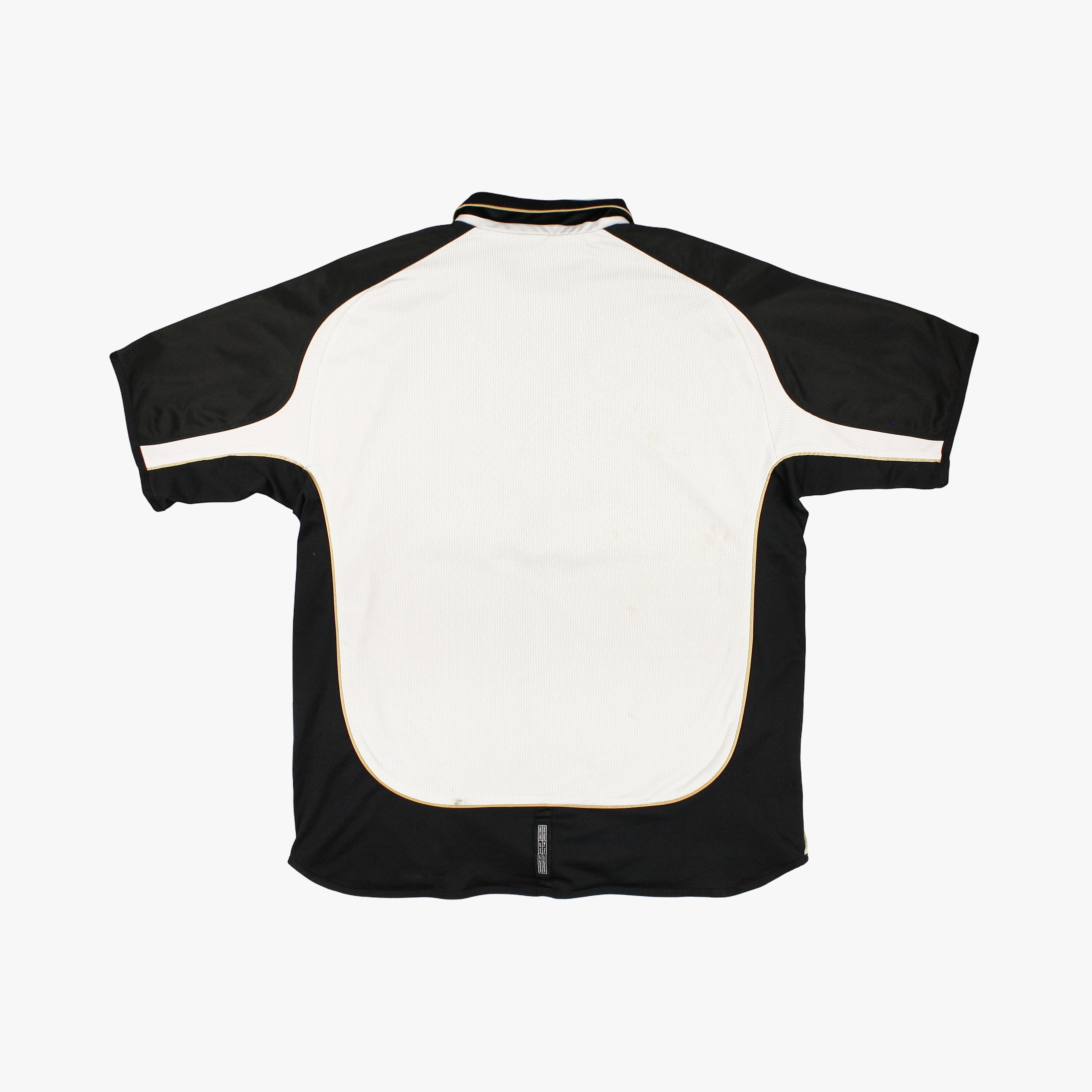 Estado: 6.5/10 (la parte blanca de la camiseta está en buen estado, pero en la parte dorada se ha caído completamente el patrocinador, el escudo y el logotipo de Umbro, ver las fotos)
